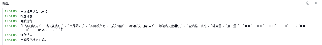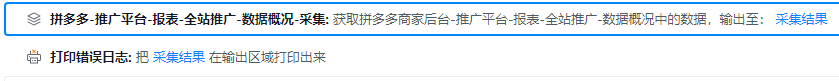 实例描述:采集 拼多多-推广平台-报表-全站推广-数据概况 页面数据后,打印输出采集结果至控制台中。