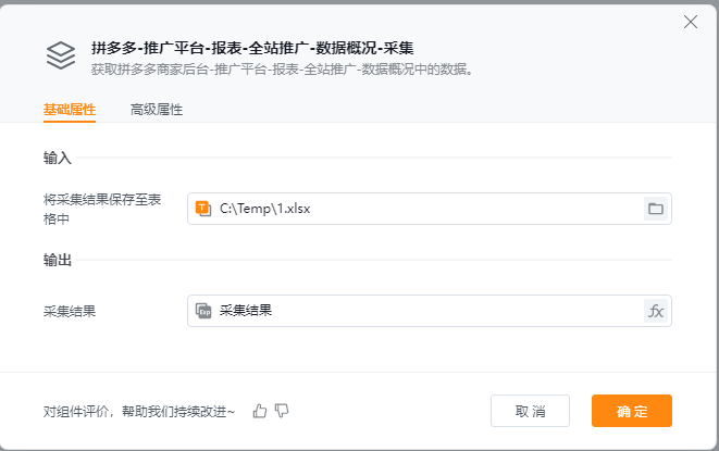 - 将采集结果保存至表格中:保存至表格的文件路径,仅支持.csv、.xls、.xlsx文件,默认值为空字符串,为空字符串时不保存至文件