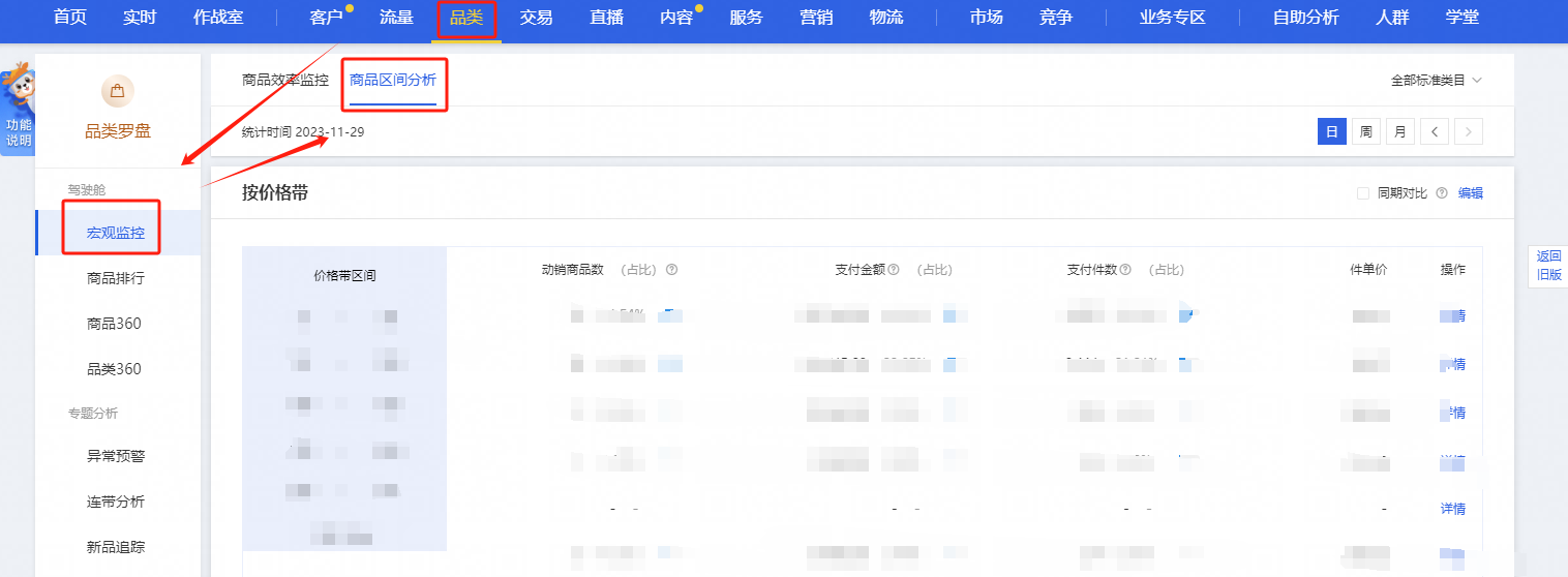 生意参谋-品类-宏观监控-商品区间分析-按价格带-采集