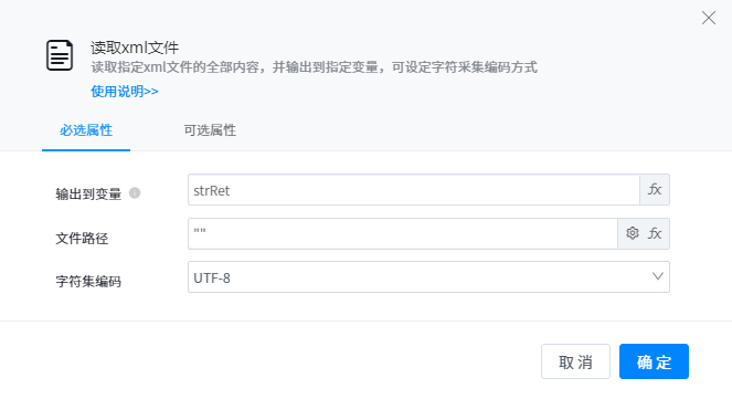 Read all the contents of the specified XML format file and output it to the specified variable to set the character acquisition encoding method.