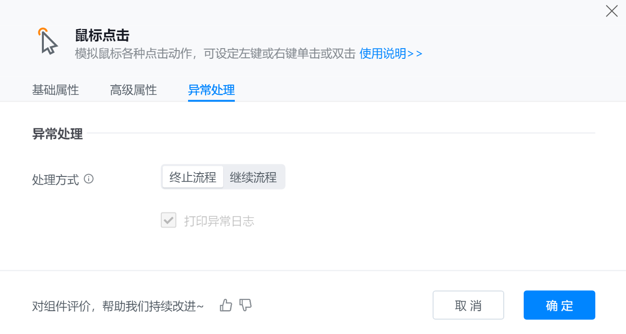 ● 目标选择:当目标类型为“点击元素目标”时,选择或拾取需要进行鼠标点击操作的元素。