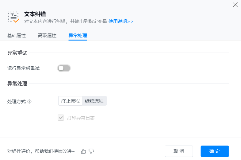 ● 异常重试:当流程运行过程中发生异常时,可根据实际需求配置是否启用重试逻辑。
