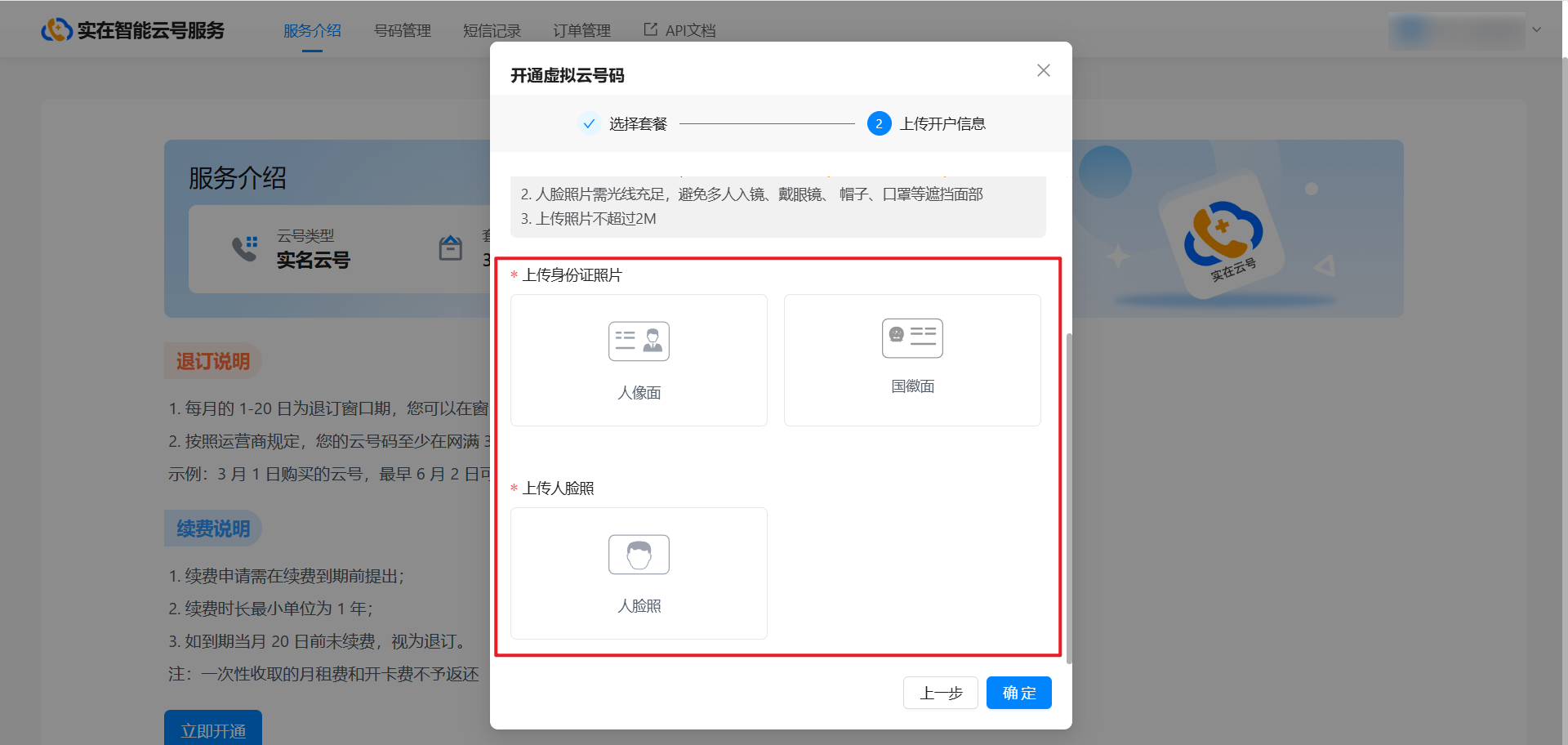- 填写姓名、身份证号码,上传身份证照片、人脸照,点击“开通”