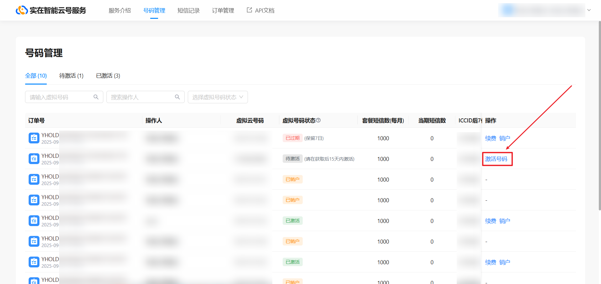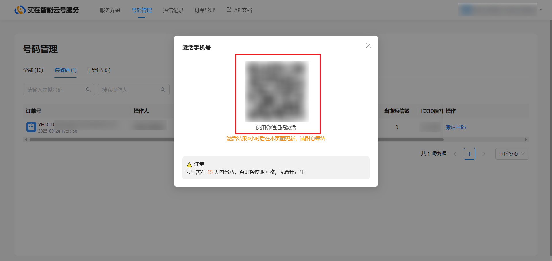 - 激活后,请静待系统刷新。一般4小时内,会更新云手机号的状态为已激活