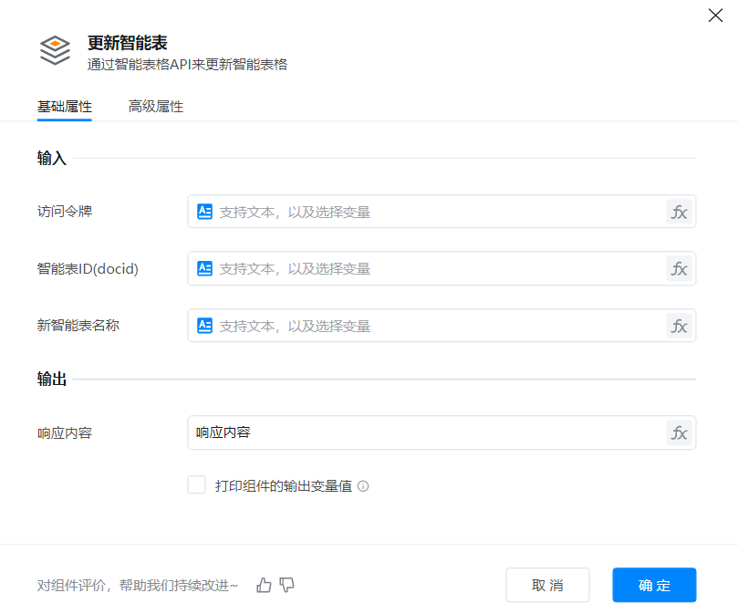 实现更新企业微信中指定智能表的名称,本组件与下图操作实现效果一致
