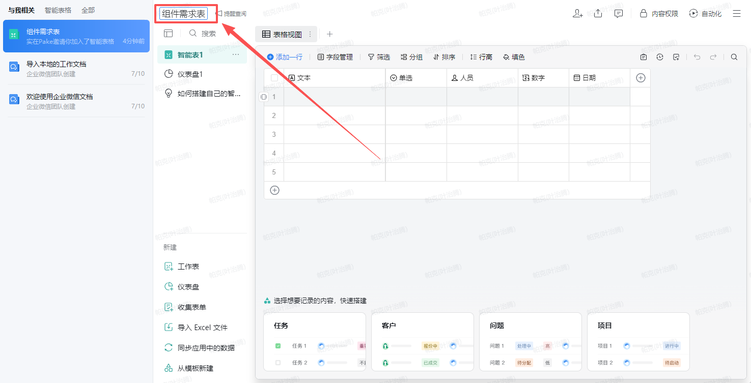 企业微信智能表格-更新智能表