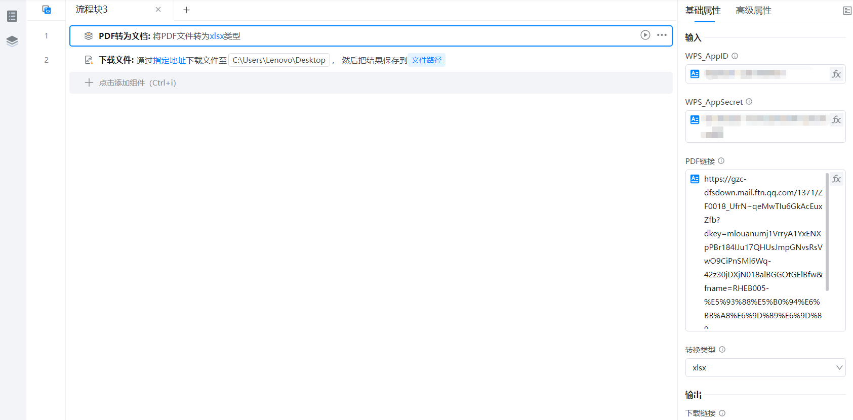 该组件用于将PDF文件链接转为指定文档格式,返回文档下载链接
