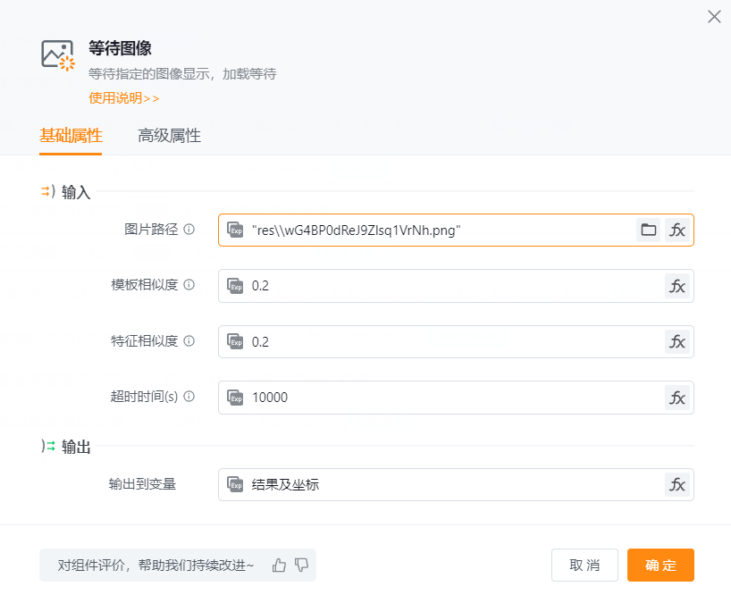 ● 超时时间:设置等待超时的最大时间。如设置数值为5,则表示执行此等待操作的时间最多不超过5s。