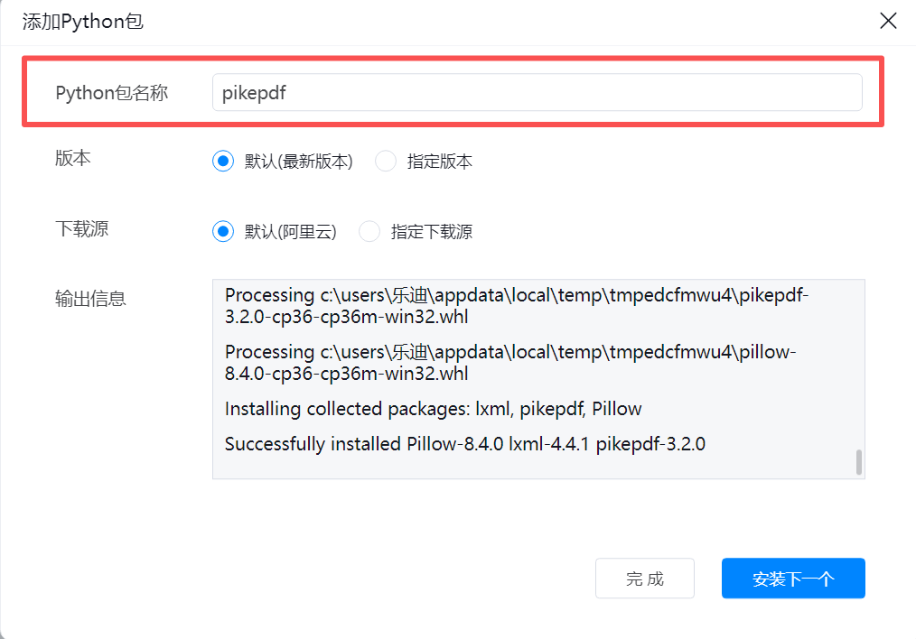 A.安装pikepdf模块包