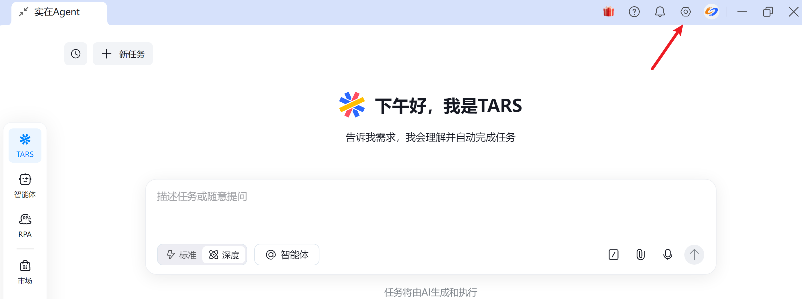 打开实在 Agent 客户端 -> 设置中心 -> Agent 设置,勾选以启用 【无界】TARS 智能助理