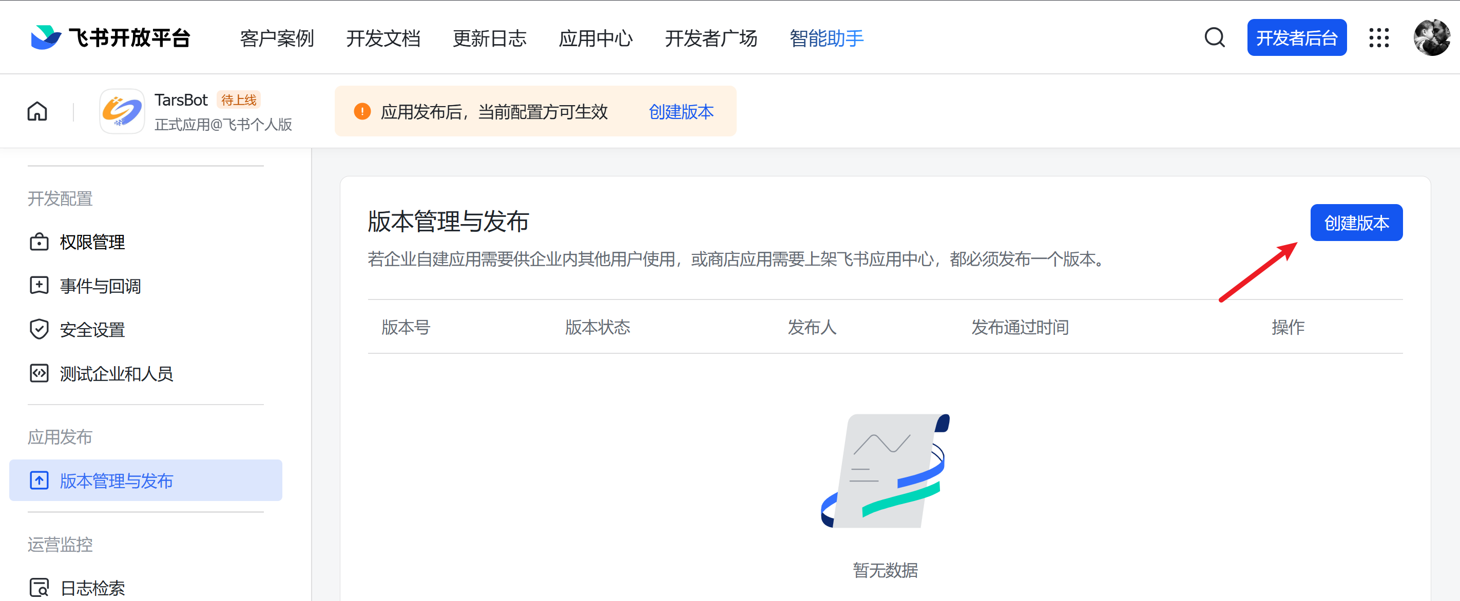使用具备管理员权限的飞书账号,访问飞书开放平台,创建企业自建应用。