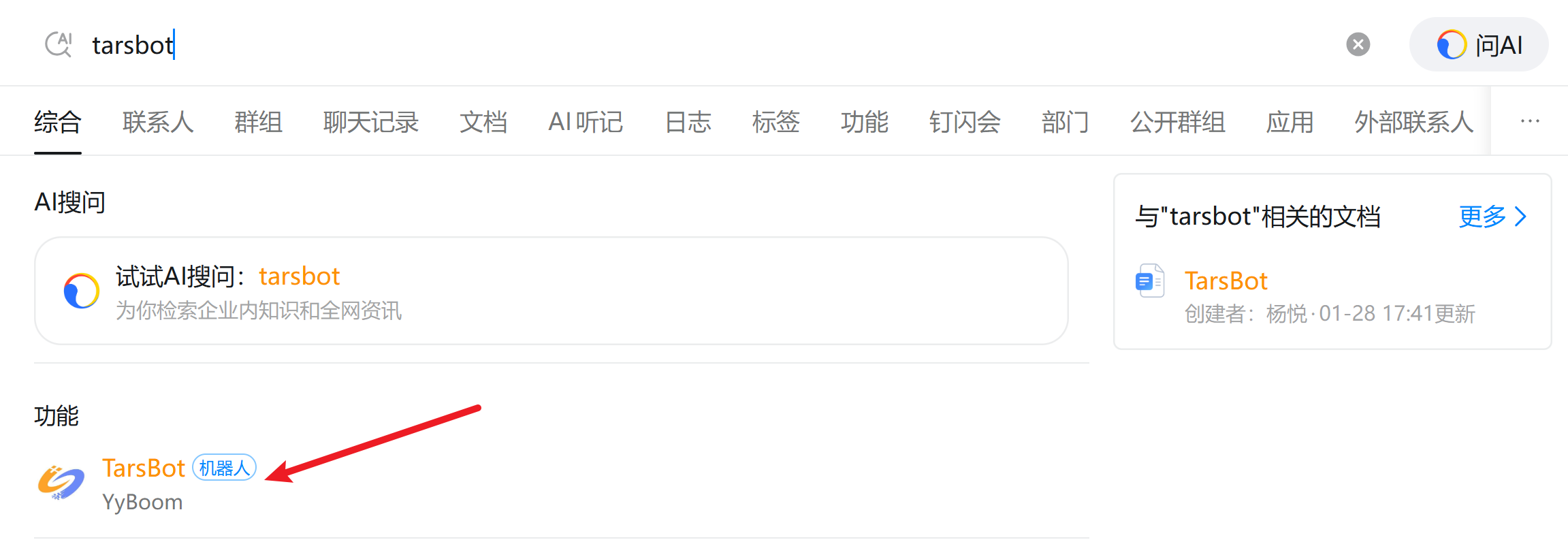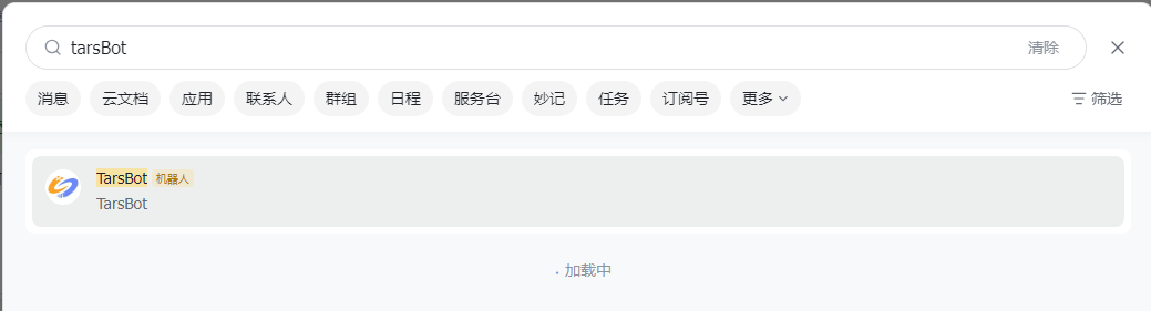 在搜索中,搜索添加的机器人(应用)名称,发起单聊