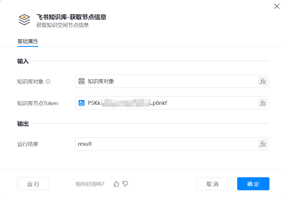 - 知识库对象:字典类型;飞书多维表连接对象,可使用【飞书知识库-连接知识库对象】组件进行获取