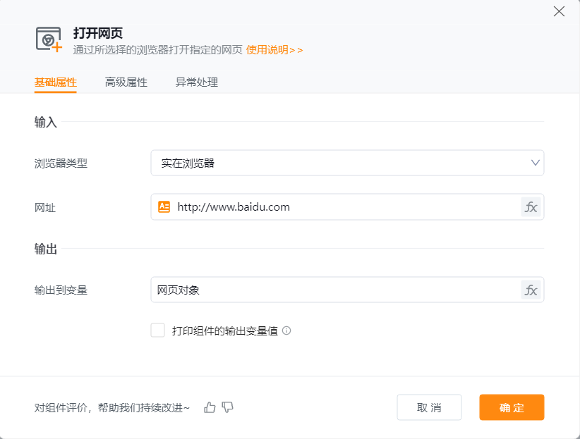 ● 网址:输入需打开目标网页的网址。