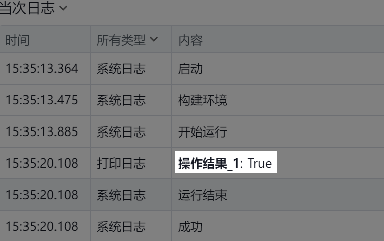在输出区域打印“操作结果_1:Ture"