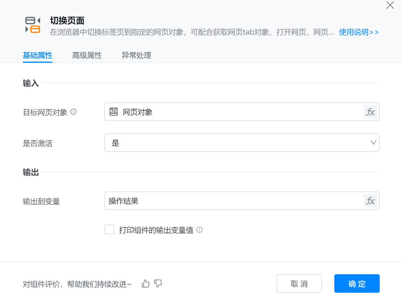 ● 输出到变量:将组件运行结果输出到变量。