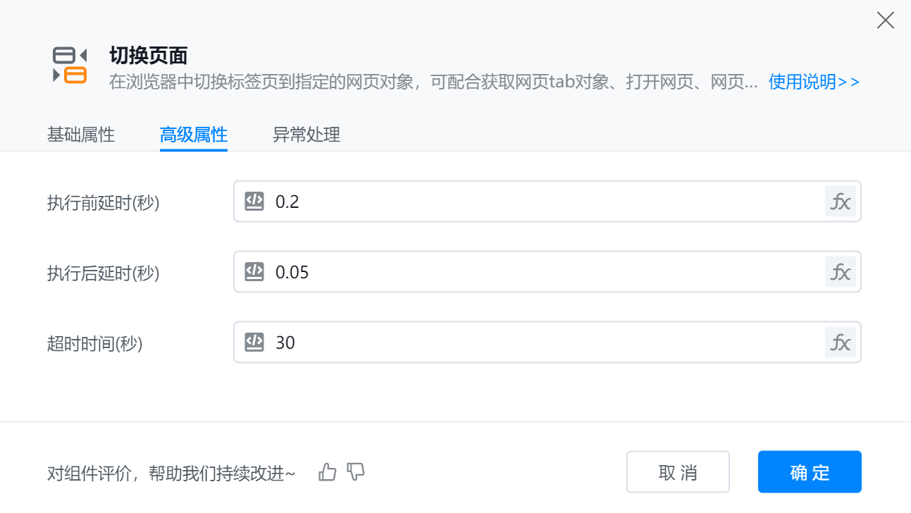 ● 超时时间 (秒):执行某个流程时,等待响应所能容忍的最大时间限制。