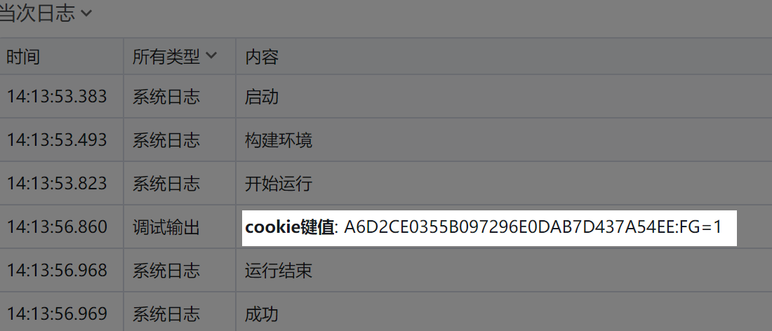 在输出区域显示"cookie键值:A6D2CE0355B097296E0DAB7D437A54EE:FG=1”。