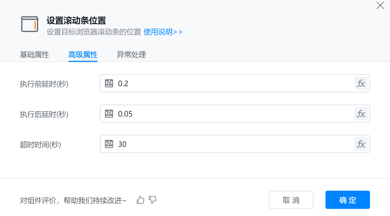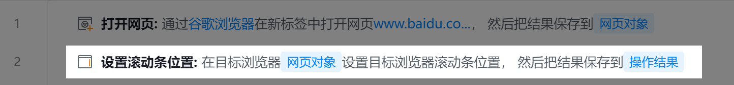 ● 目标浏览器对象:指的是需要执行滚动操作的具体浏览器窗口或页面,在该对象上调整滚动条至所需位置。