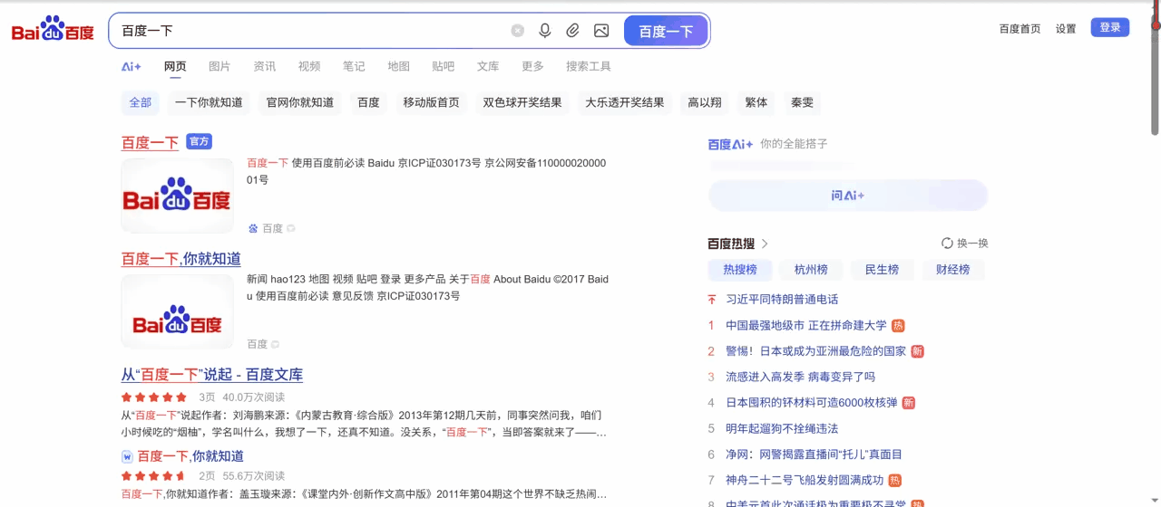在谷歌浏览器打开百度,设置滚动条位置,将操作结果进行输出。
