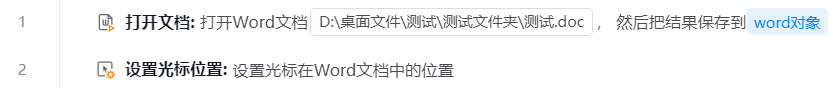 1. 使用【打开文档】组件打开一个Word对象;