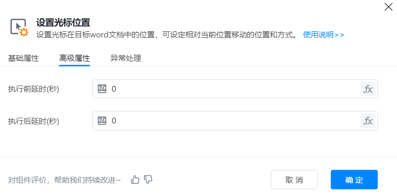 ● 执行前延时(秒):流程开始执行预设任务前,特意设置的一段等待时间,目的是预留缓冲(如等待前置条件就绪、避免操作冲突)。