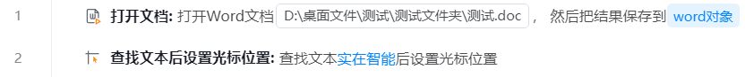 1. 使用【打开文档】组件打开一个Word对象;