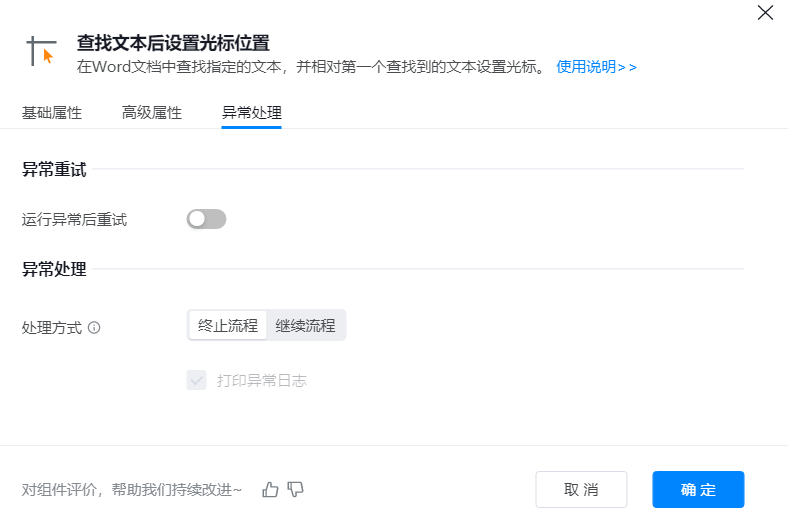 ● 异常重试:当流程运行过程中发生异常时,可根据实际需求配置是否启用重试逻辑。