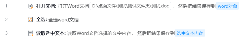 打开一个Word,全选内容,然后读取选中内容并输出。