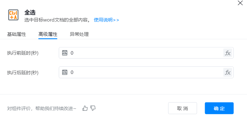 ● 执行前延时(秒):流程开始执行预设任务前,特意设置的一段等待时间,目的是预留缓冲(如等待前置条件就绪、避免操作冲突)。