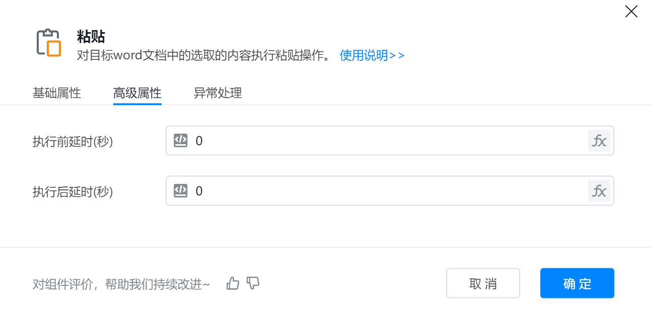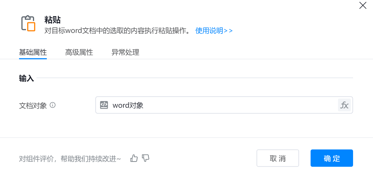 ● 文档对象 :代表要操作的Word文档对象,可以使用打开文档等组件返回的变量。
