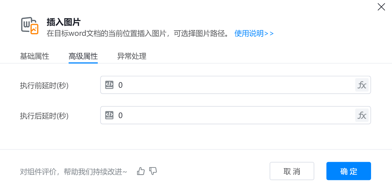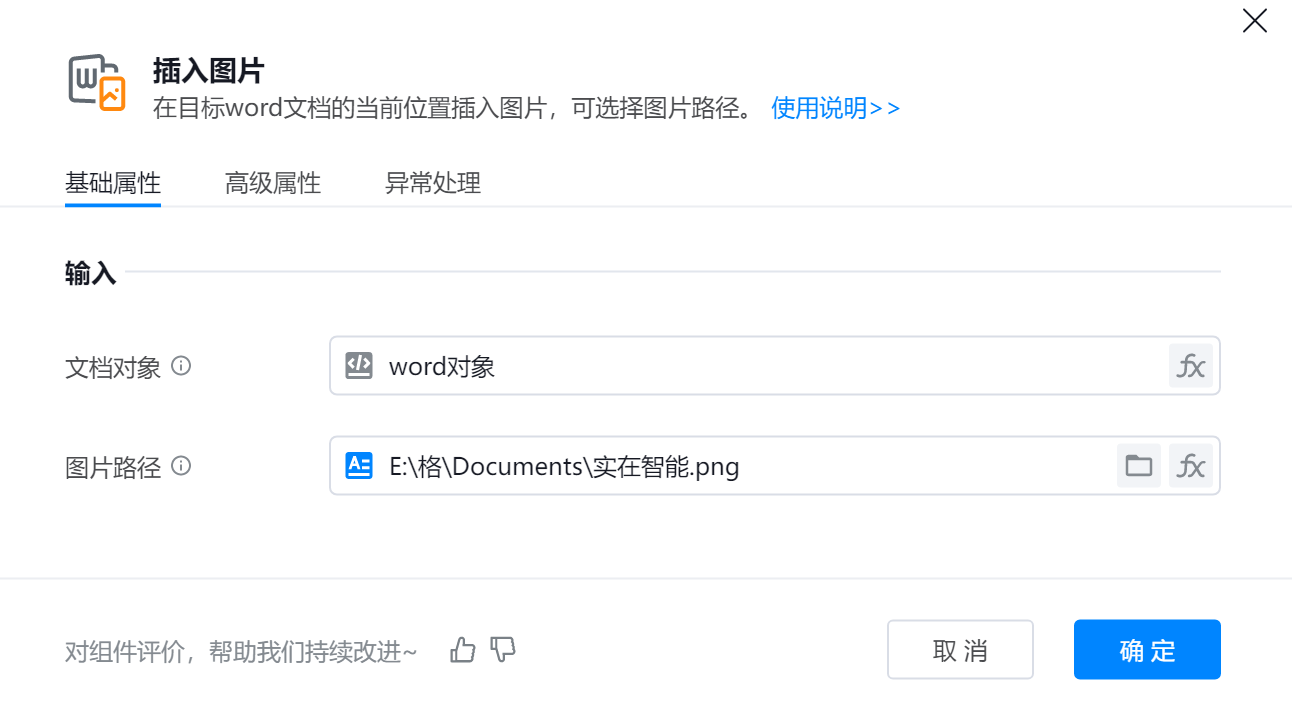 ● 图片路径 :需插入到文档中的图片的路径,可点击右边的按钮图标,选择本地图片或变量。