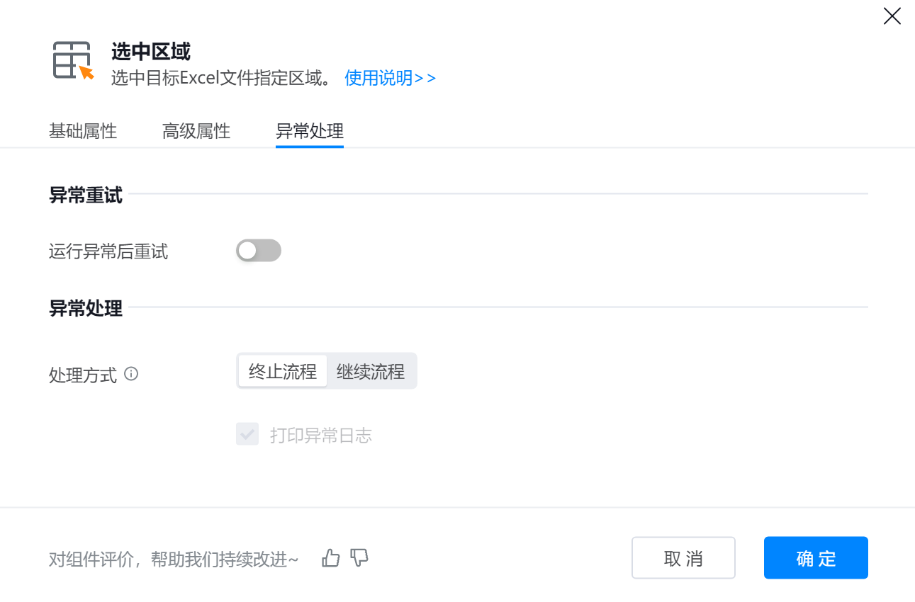 ● 异常重试 :当流程运行过程中发生异常时,可根据实际需求配置是否启用重试逻辑。