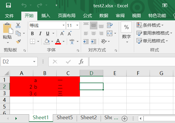 打开Excel,然后将指定区域的背景颜色设置为红色。