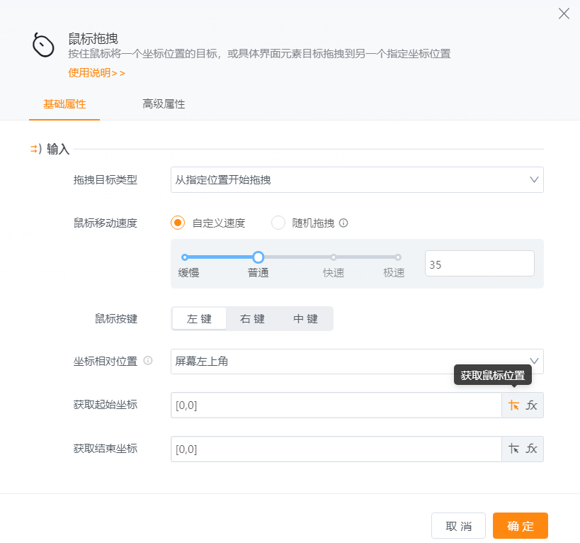 - 拖拽目标类型:可下拉菜单选择从指定位置开始拖拽或拖拽指定的元素目标。