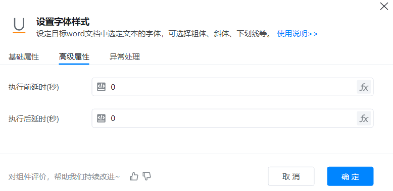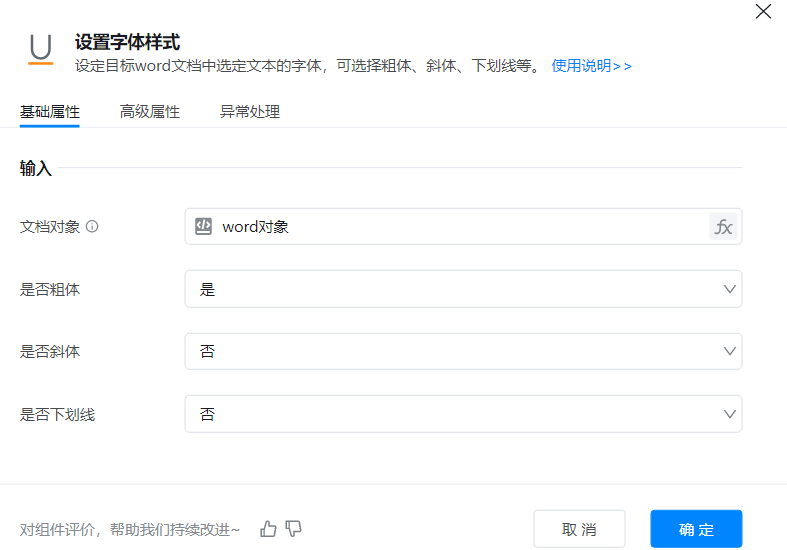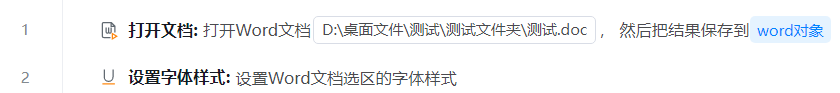 ● 文档对象 :待操作的Word文档对象,可以使用【打开文档】等组件返回的变量。
