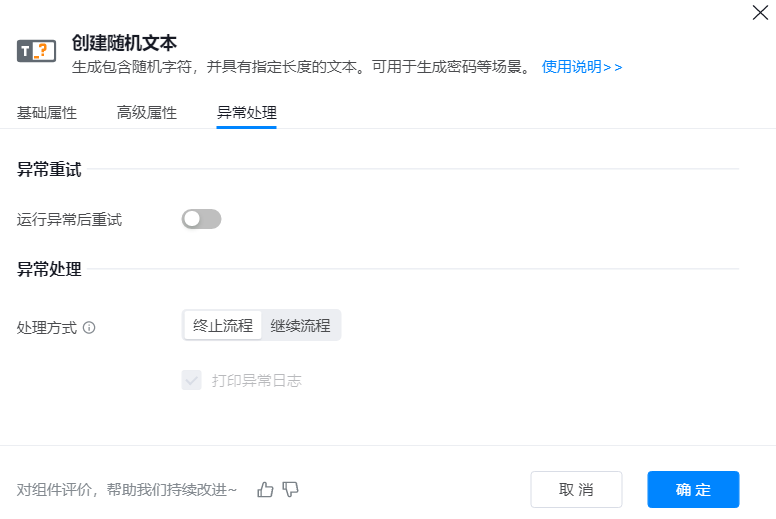 ● 异常重试:当流程运行过程中发生异常时,可根据实际需求配置是否启用重试逻辑。