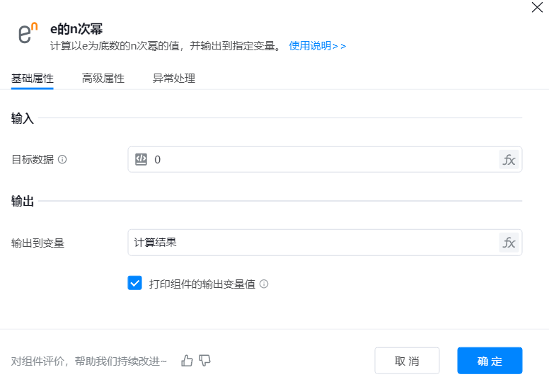 ● 目标数据:输入需计算e的几次幂值,如“0”。