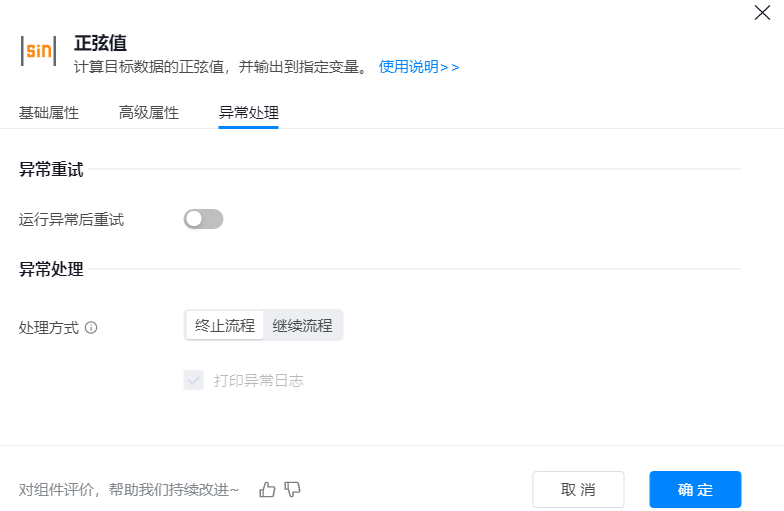 ● 异常重试:当流程运行过程中发生异常时,可根据实际需求配置是否启用重试逻辑。