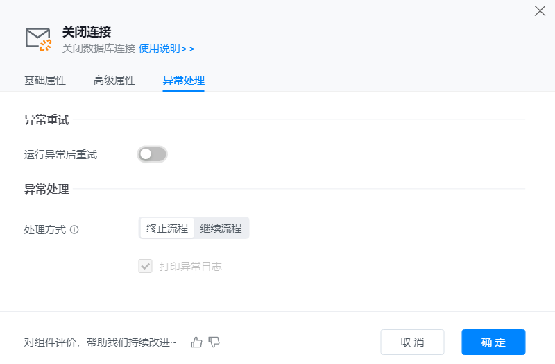 ● 异常重试:当流程运行过程中发生异常时,可根据实际需求配置是否启用重试逻辑。