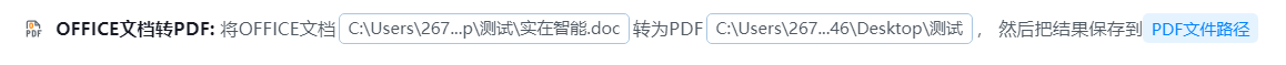 使用【OFFICE文档转PDF】组件将名为“实在智能”的word文档转化为 pdf 格式,并保存至当前文件夹下。