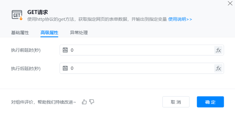 添加【GET请求】组件到可视化编辑区,并配置其基础属性。