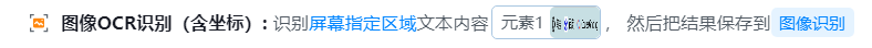 调用本地服务对屏幕中的指定区域或本地图片进行OCR识别,将识别出的图像信息(包含坐标)输出到指定变量。