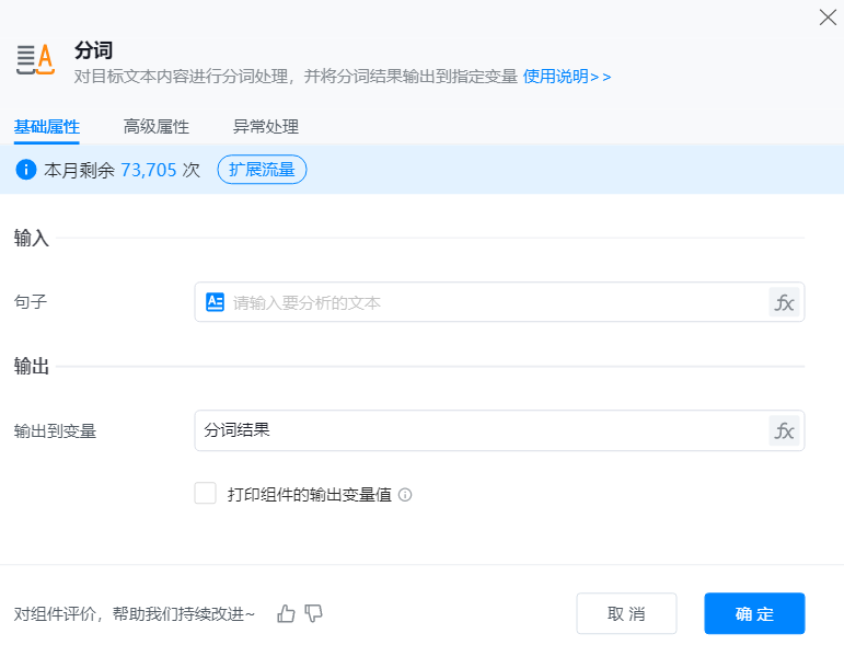 添加【分词】组件到可视化编辑区,并配置其基础属性。