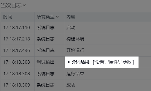 对目标文本进行分词处理,并将结果输出到指定变量。