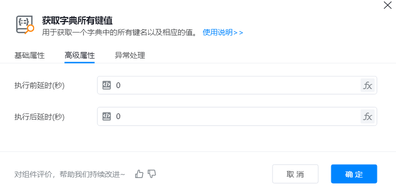 ● 字典选取:输入想要获取键值对的字典的名称,或直接从变量库中选取。
