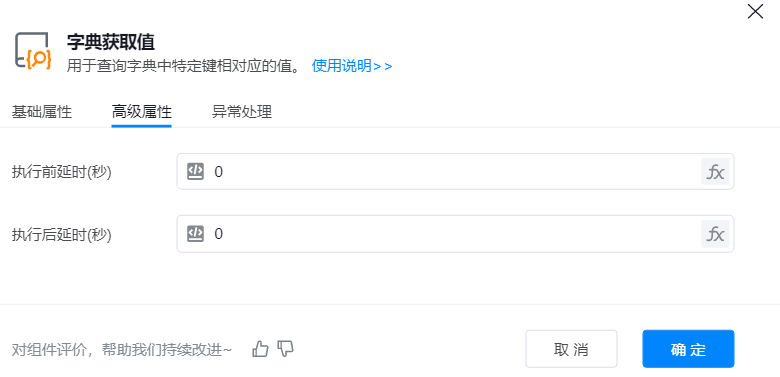 ● 字典选取:输入想要获取键值的字典的名称,或直接从变量库中选取。