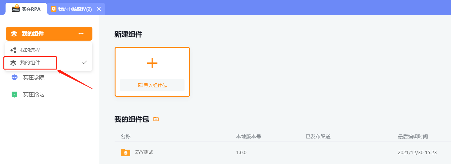 也可进入到组件包中,单击“新建组件”进行创建。