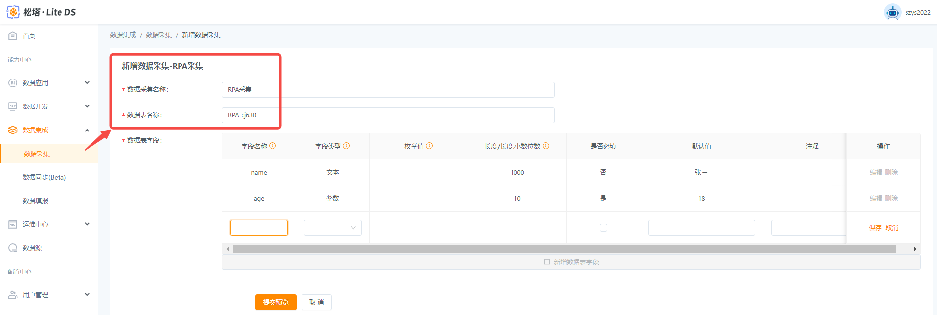 1. 在数据采集中,点击“新增RPA采集”,根据业务需要填写采集规则。