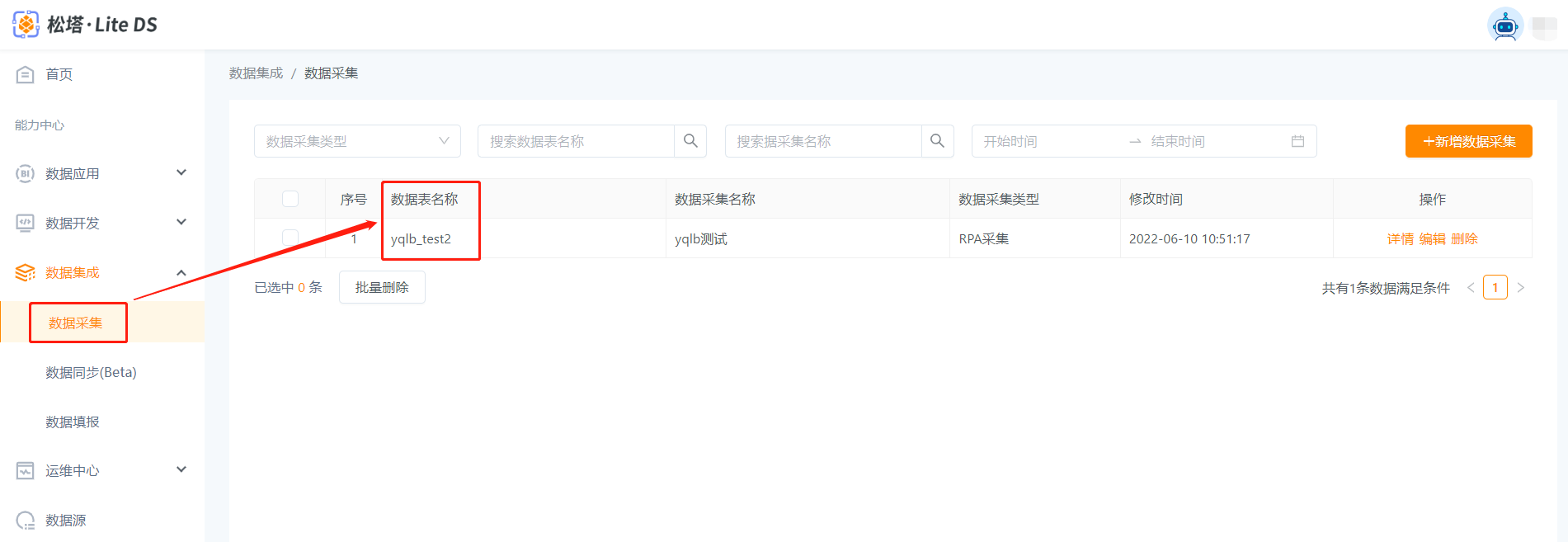 1、选择数据表:选择在“数据集成->数据采集->RPA采集”中新建的数据表,只可选择登录账号下有权限的数据表。